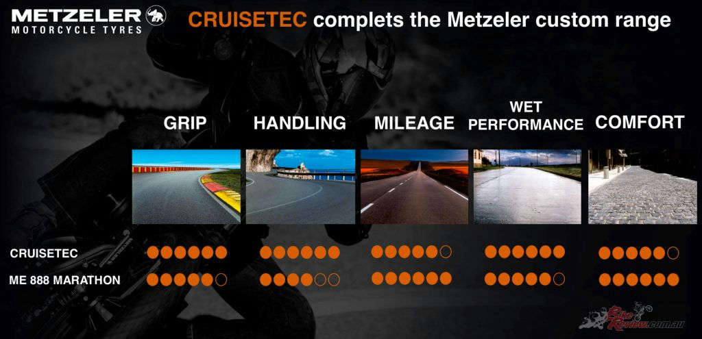 CRUISETEC™ je výkonnostně orientovaná pneumatika od Metzeler navržená speciálně pro V-Twin cruisery a performance touring motocykly. Pneumatika představuje evoluci v cruiser segmentu, kde se velké a těžké motocykly transformují na vysoce výkonné stroje vyžadující odpovídající pneumatiky.