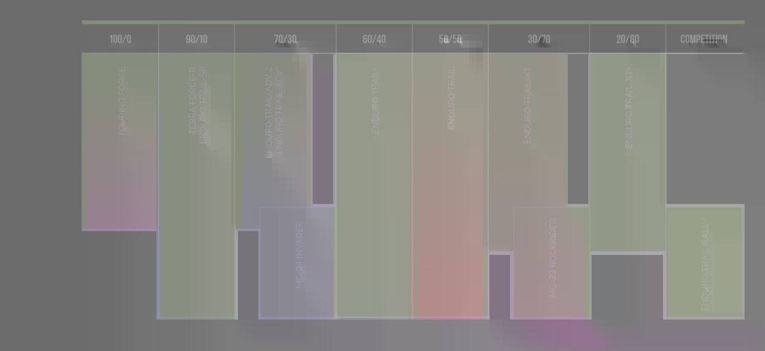 Pneumatika Mitas TERRA FORCE-R je navržena jako duální sportovní - trailová - dobrodružná pneumatika v poměru 90/10 (90 % pro jízdu na silnici a 10 % pro jízdu v terénu). Vynikající volba pro dynamické jezdce, kteří milují dobrodružné výlety po silnici a užívají si vzrušení z občasné jízdy v terénu. Její vysoce funkční konstrukce dezénu poskytuje dynamický výkon, odezvu, ovladatelnost a stabilitu. Pokročilé složení běhounové směsi zajišťuje vynikající přilnavost na mokré vozovce a při nízkých teplotách.