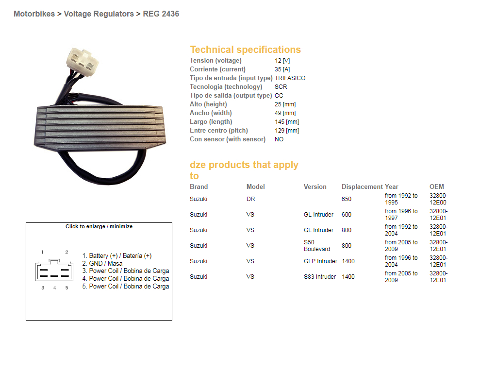 - DZE regulátor napětí SUZUKI DR 650 92-95; VS 600 INTRUDER 96-97; VS 800 INTRUDER 92-04; VS 800 BOULEVARD 05-09; VS 1400 INTRUDER 96-09 (OEM-32800-12E01) (ESR751)